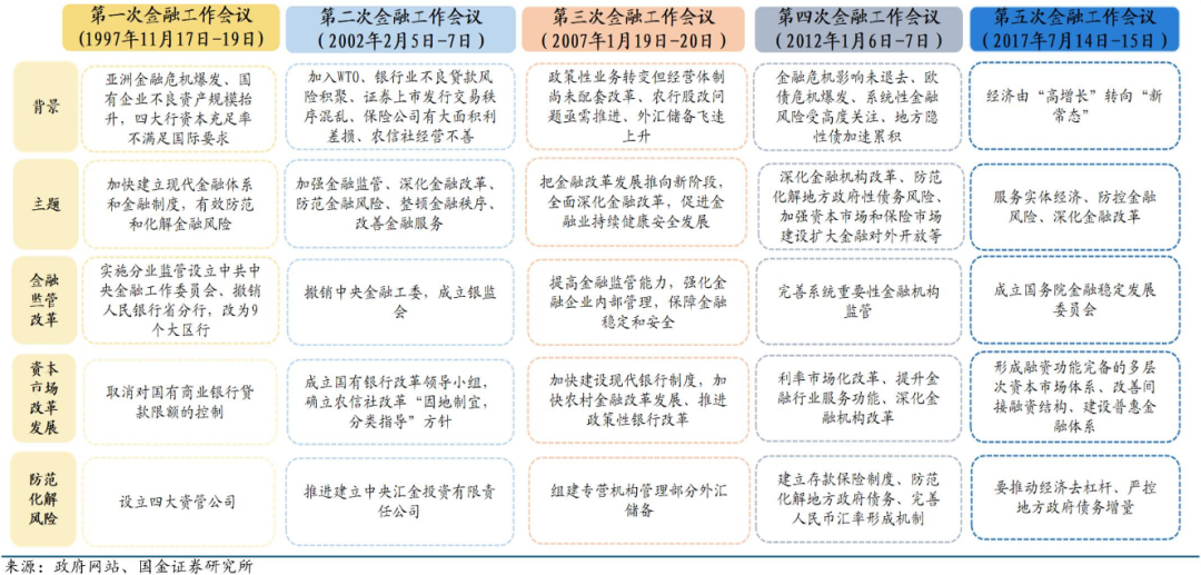 过去两天,中央金融工作会议在京举行,这是我国金融领域规格最高的会议,自1997年第一届会议召开以来基本每五年召开一次。会议在金融稳定和监管等领域的政策部署,对我国长期金融业发展具有重大意义,深远影响我国未来几年的金融发展格局。