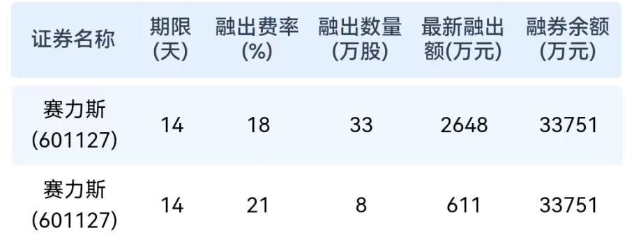 4、今天在看融券数据的时候,发现居然有人用20%左右的年化费率来融券赛力斯,这个态度真的是太强了呀。虽然期限只有14天,但就是说明这个资金看空未来半个月赛力斯的状态。