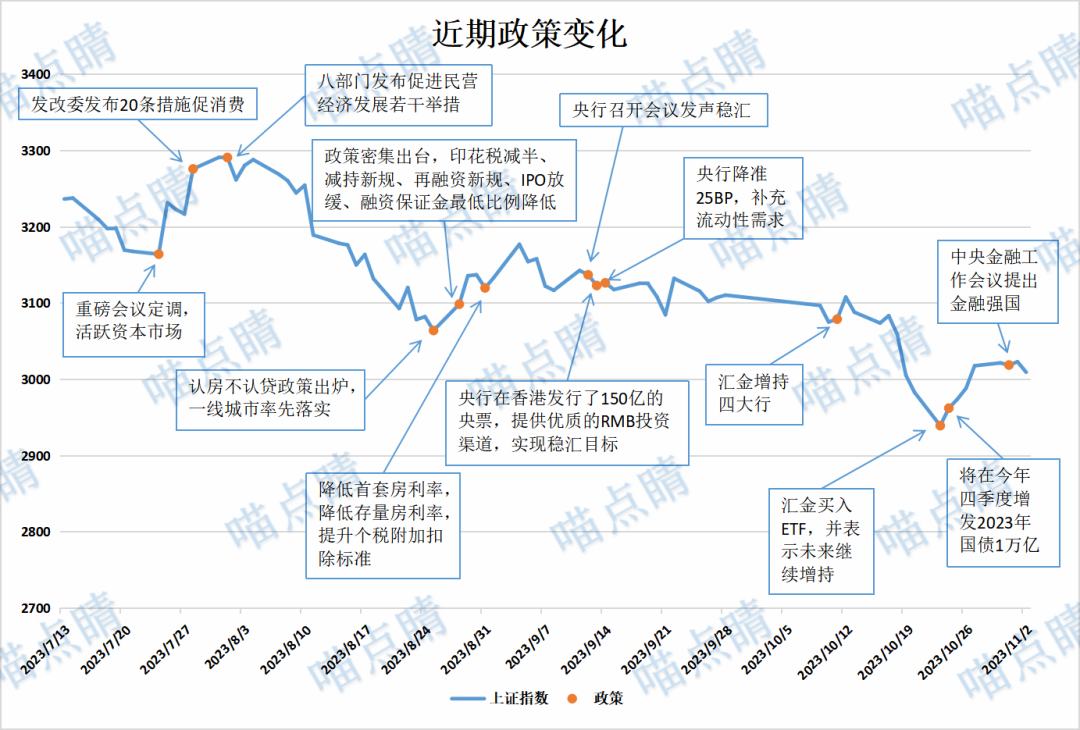 对于接下来的市场应对策略,机构普遍认为市场底部已经夯实,当前已进入以超跌成长为主的修复阶段,上涨概率加大,A股配置优势逐渐凸显。理由也很充分,内部利好不断,如上图【近期政策变化】所示,外部则有加息扰动减弱,中美缓和等等刺激。