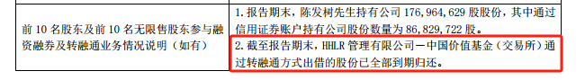 HHLR的背后是高瓴资本,在今年3月前后共计出借了1%隆基绿能的股份,出借后表面显示的持股比例由5.85%降至4.85%。可到了三季报披露时,事情不对劲了,在明确此前出借股份已全部归还的背景下,HHLR的持股比例竟然变成了4.98%,相比出借前的5.85%少了近1%。