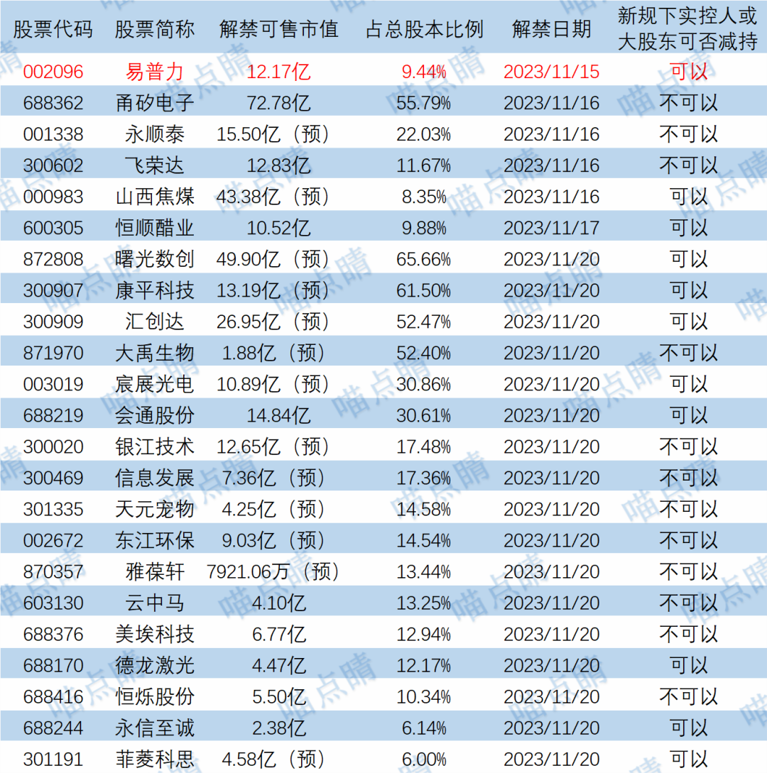【限售解禁】