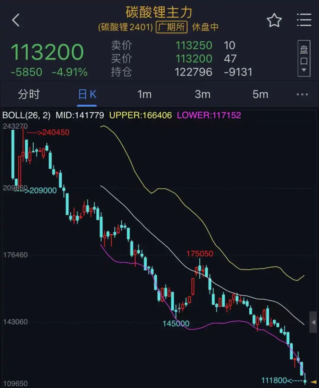 碳酸锂期货的保证金是9%,就是说自带11倍杠杆,从该期货成立来至今共下跌53%,这对多头来说无疑是毁灭性的,小仓位爆仓都算好的,最惨的就是死扛不断续交保证金的,听说已经有大哥卖了几套房往里边输血了。。