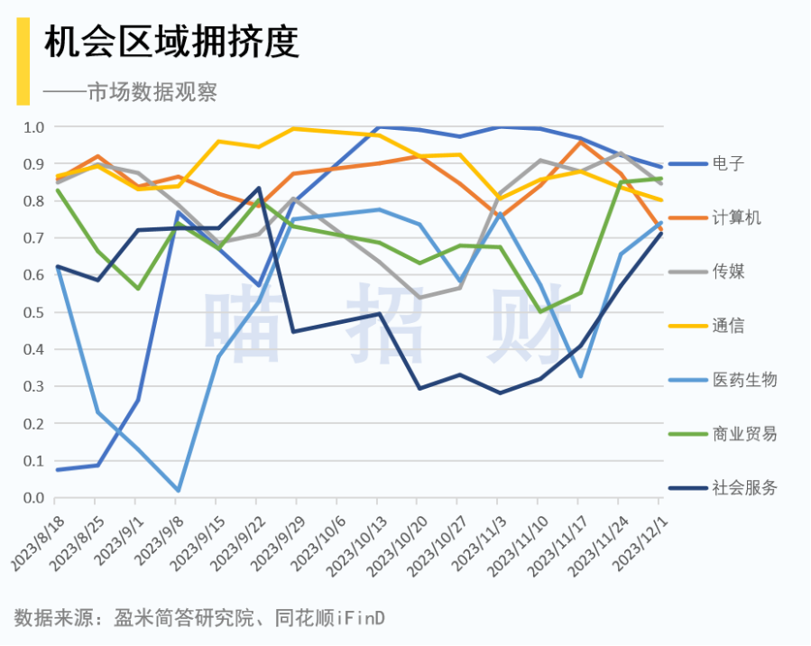 热门区域里的汽车和机械设备是逆市场流动性周期的,想穿越还比较难。机会区域里的TMT和医药倒是比较同步,上周五总量放量市场也是选TMT带领,这块可以多关注一些。