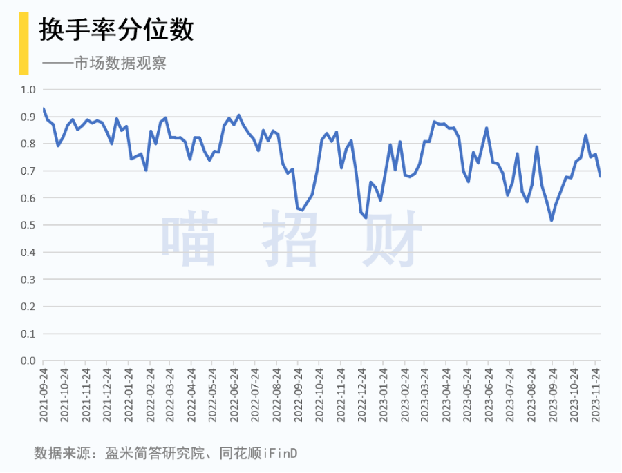 全市场换手率分位数下降,过去三周是本轮的流动性空头周期,下行期结构性行情是没戏的,择时角度需要找到总量流动性的拐点再说。上周五的小放量是第一个信号,今天延续放量稳住了短期的流动性中枢,这里可以重新寻找结构性行情了。