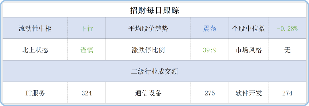 流动性层面,全市场成交额7500亿,相比昨天缩量300亿,流动性中枢继续下行。持续流动性下行是不好的事,等放量以后再做态度的转变吧。