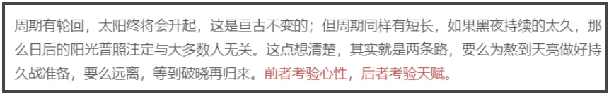 至于咱们普通投资者该如何度过当下的困境,昨天的态度挺明确了,要根据自己的情况和特点做好应对。
