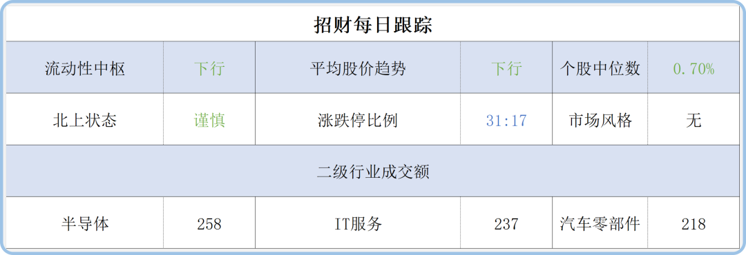 策略上,保持中性态度跟随市场,流动性中枢出现放量再参与确定性会高很多,我主观感觉应该很快了,心态上要积极。结构上当前没有明确的方向,逻辑上讲科技、制造和周期是需要持续关注的。