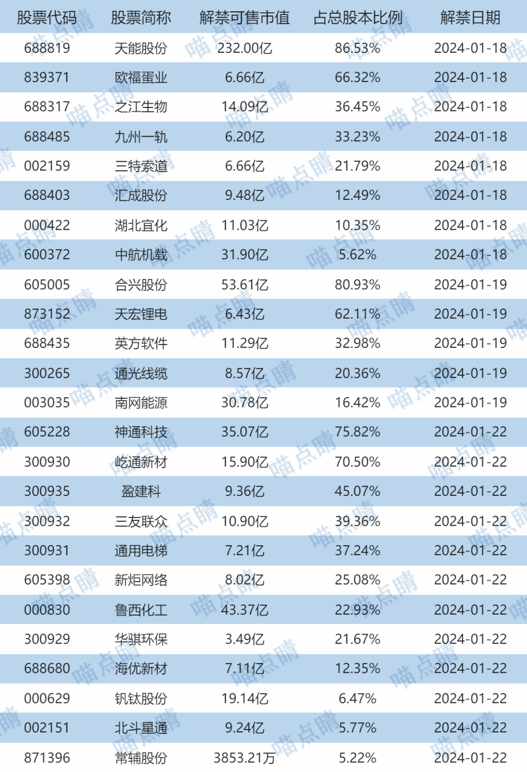 【限售解禁】