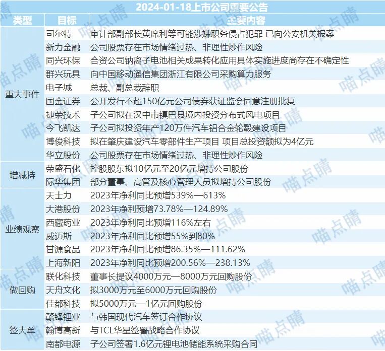 7、晶盛机电2023年预盈43.85亿元至49.7亿元,同比+50%至70%,符合预期。半导体+光伏的双重标签加持,让公司股价节节败退,但回过头看业绩没出大问题。最近光伏有回暖预期,走的也很强,半导体涨价的事也传了一阵子了,两大难都有修复预期,当然最后咋走,还是得交给市场先生。。