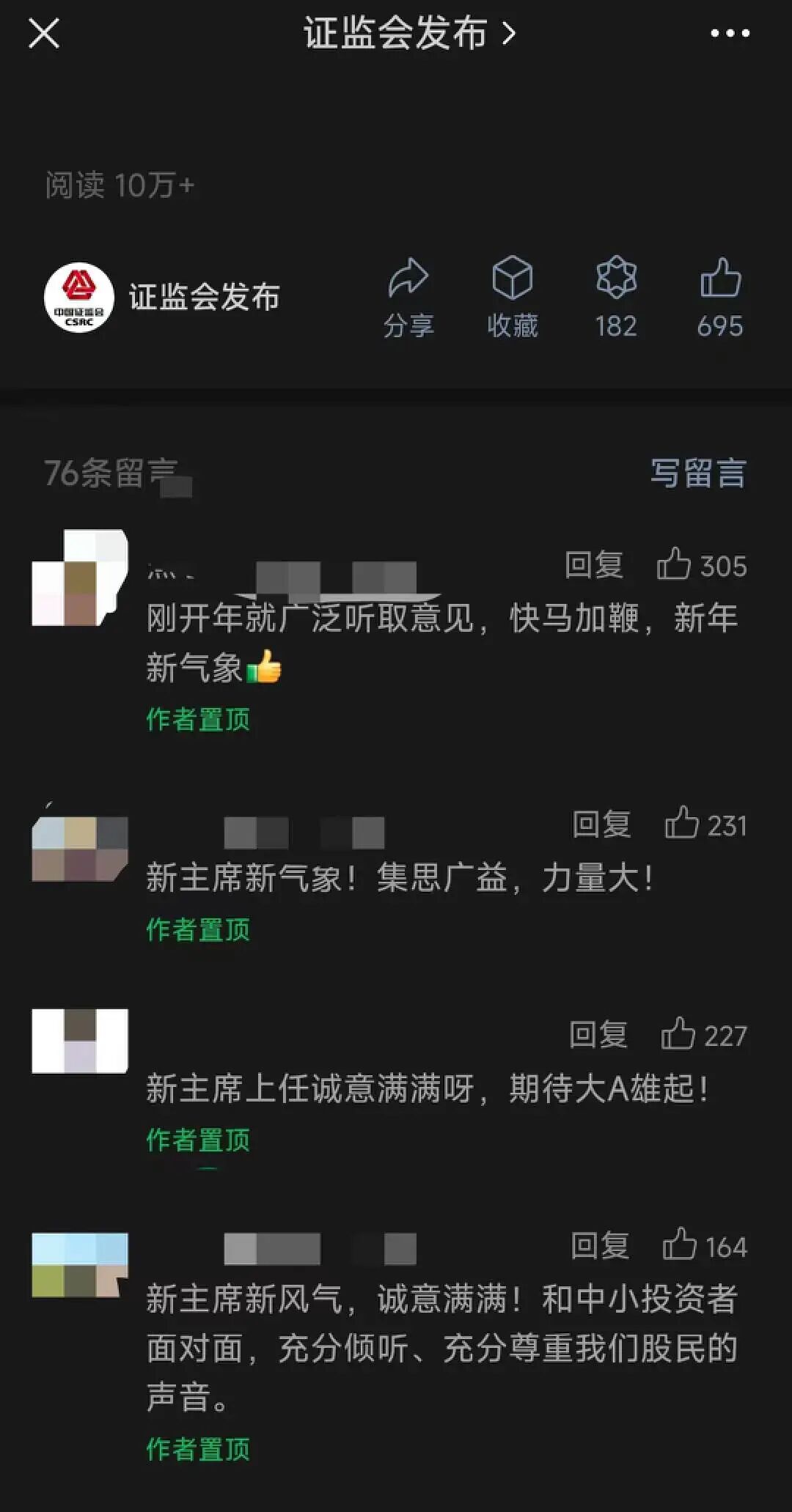 这块有一个细节,村里放开了公众号的评论区,有很多投资者留言被翻出来,除了一些赞许,还有一些建议,这是一种非常积极的态度。