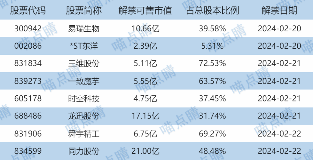 今天易瑞生物、*ST东洋有大额可售解禁。