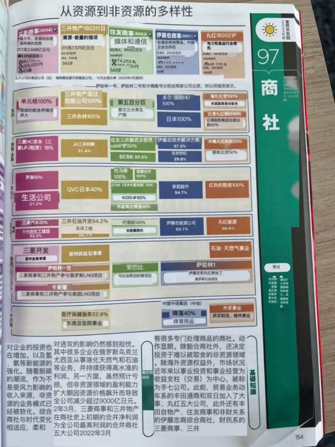 (上面的这张图来自我在日本专门买的一本书,五大商社业务介绍,日本经济新闻出品的2023经济年鉴)