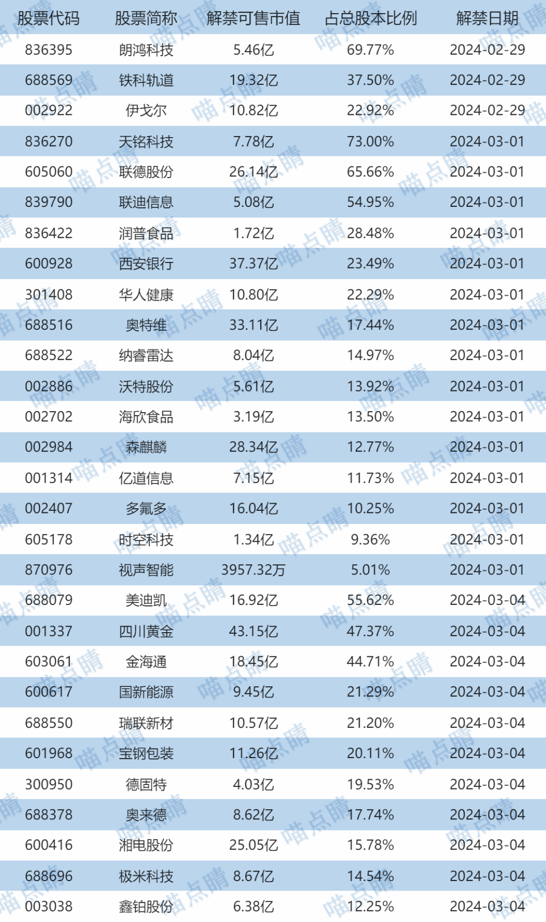 今天朗鸿科技、铁科轨道等有大额可售解禁。