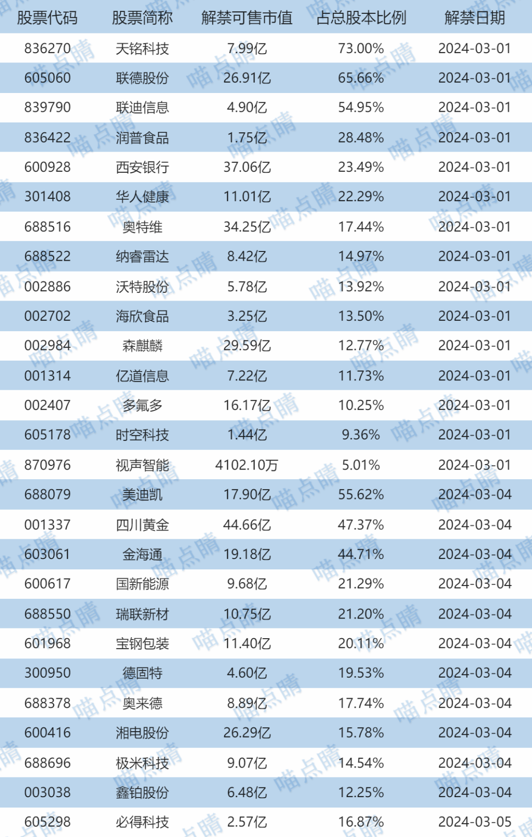 今天天铭科技、联德股份等有大额可售解禁。