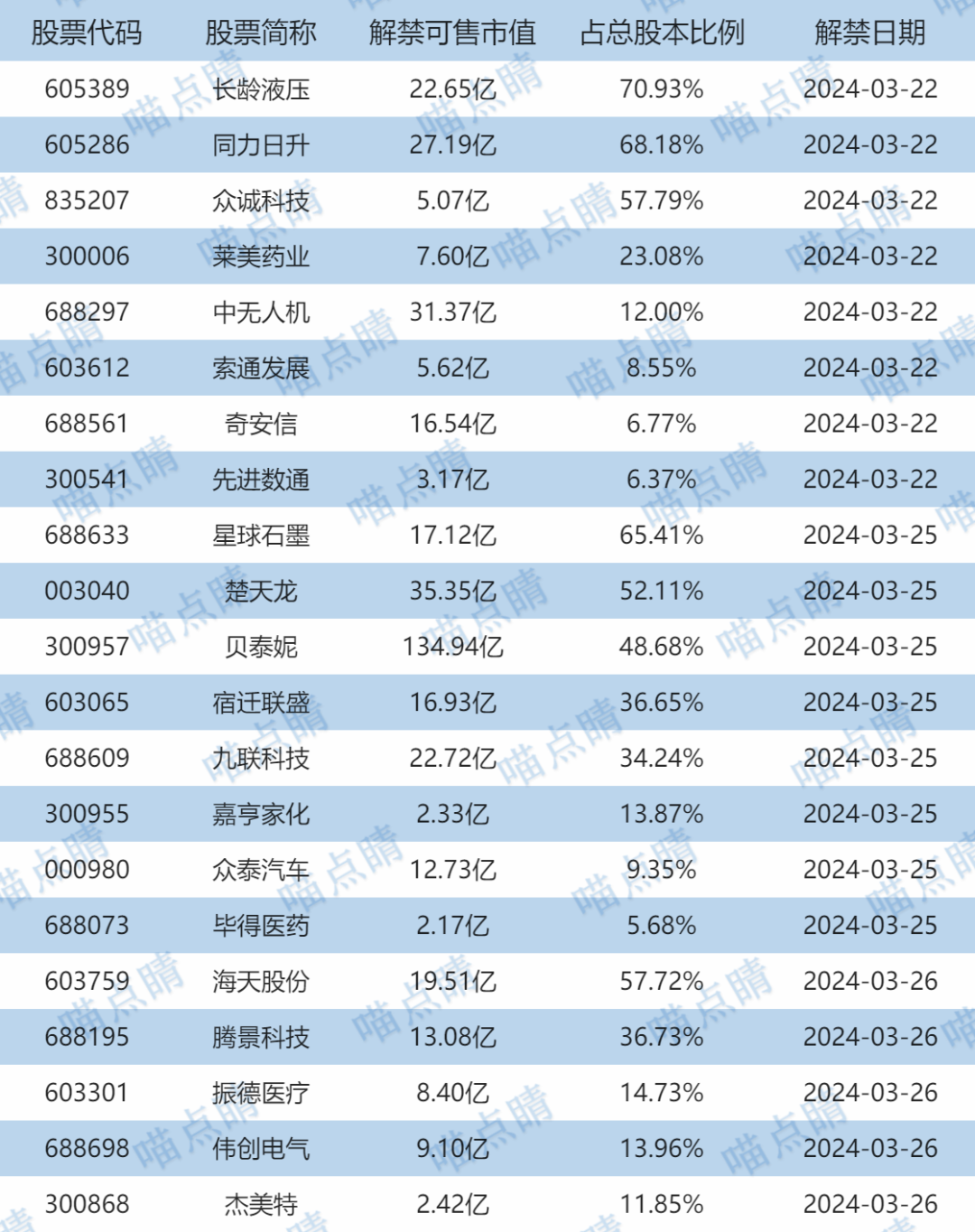 【限售解禁】