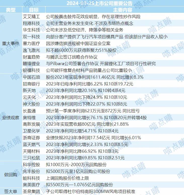 1、中国石油2023年营收3.01万亿元,同比-7%,净利润1611.46亿元,同比+8.3%,创历史新高。凭借新能源新材料业务的快速发展,在油价同比下降16.8%的情况下,利润仍录得正增长,体现了一定的业绩韧性。