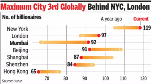 受益印度指数大涨,穆克什·安巴尼 (Mukesh Ambani) 和高塔姆·阿达尼 ( Gautam Adani)等印度富豪的财富有了巨大的提升,孟买新崛起了26位十亿美金级富豪,财富增长47%,主要分布在能源和制药行业。