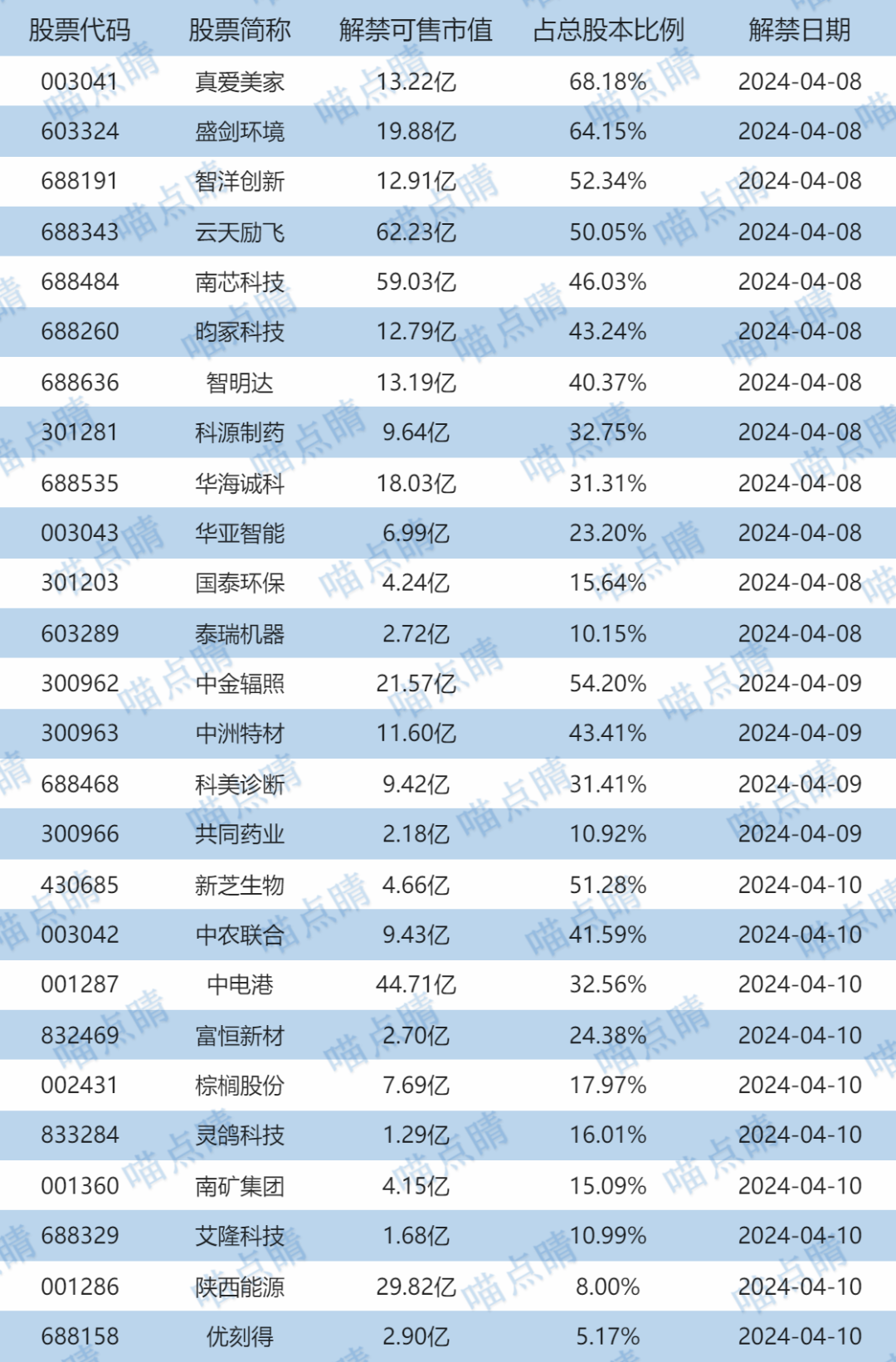 今天真爱美家、盛剑环境等有大额可售解禁。