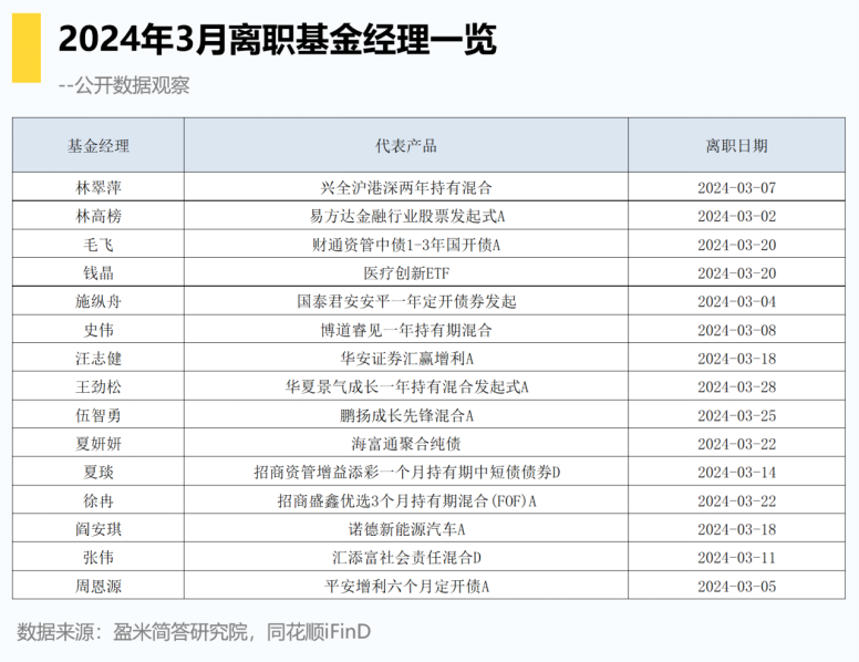 在半个多月前我们其实做过一张表,统计了3月以来离职的基金经理,因为当时正是政策变化的时间窗口,所以我们本身比较关注。在Y公司的林XX市场也比较热议,但是否有事儿没有官方的信息我们也不能确认。