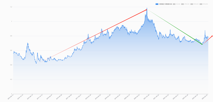 从结果上看,大市值的行业龙头今天表现都比较好,无论是成长、赛道还是红利都是如此。大小市值风格在2021年初转到了小盘上,经过3年以后,今年年初大盘股的相对收益开始跑出来了。按照这个文件的框架看,未来几年大盘股跑赢是大概率事件。