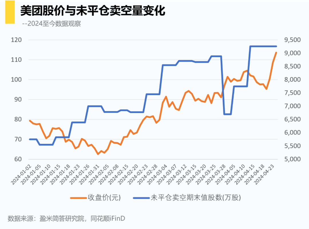 美团从今年一月份到现在已经涨得非常多了,但从披露的数据上看,卖空的数量是在持续增加的,并没有做出平仓的动作,腾讯的状态也差不多,总体卖空股数维持震荡。