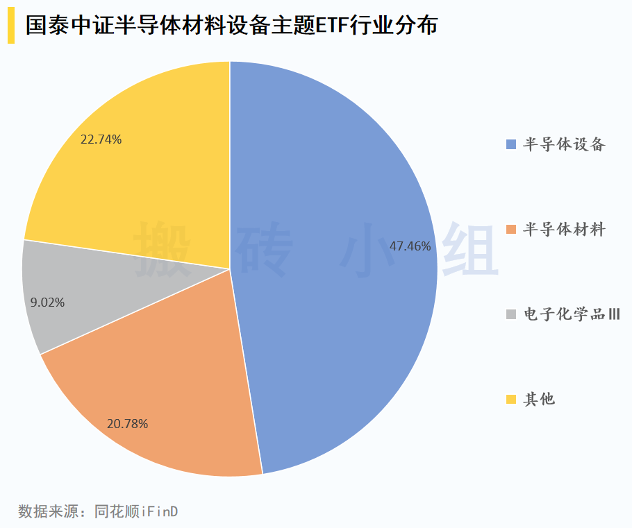 按照申万三级行业分布,半导体设备行业占到了47%,半导体材料加起来也有30%了,剩下的部分虽然属于其他三级行业,但也都是跟半导体产业链相关的。