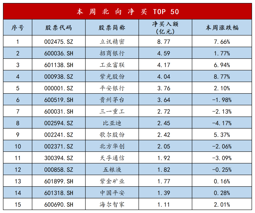 昨天暂停一天的北向回来净买了60多亿,降息预期提升,头铁的北向果然回来了。这周是北向开盲盒的第一周,我简单做了统计,可以发现外资喜欢的还是赛道白马,最近走势较强的地产并未有明显动作。