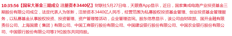 大基金首期是2014年,金额1387亿,第二期是2019年,金额2041.5亿。此次第三期算是时隔5年的又一轮回,且金额几乎是前两期的总和,扶持力度显著增大,彰显了对半导体产业的重视。