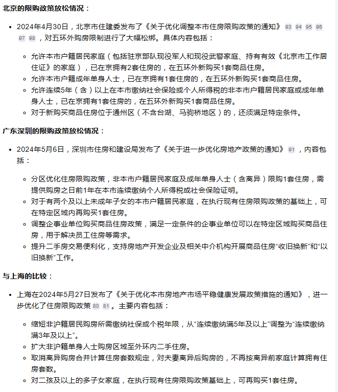 具体的细节不复述了,扔两个我拿Kimi生成的与北京广东的对比,整体看上海的力度还是偏大的。该做的都做了,后边重点跟踪楼市量价的变化吧。