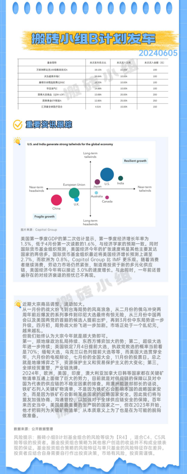 2、今天周三是B计划发车的日子,我们这回调整了发车的比例,加大了黄金和大宗商品的发车头寸。最近上游资源价格都调整了不少,一部分是前期涨太多了有回调需求,另一部分是市场对需求端有一定的担忧,工业金属价格下降得更多一些。