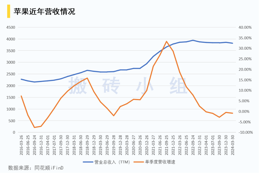 苹果在2016年和2019年都经历了一次营收低谷,后续重回增长除了手机更新以外,都是有新品提供的动能,2016年后是Apple watch,2019年是Airpods。