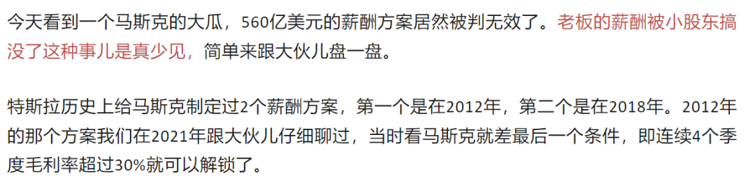 这事儿我们之前跟踪过(文末有相关文章链接),560亿期权薪酬案是在2018年通过的,过去这几年马斯克确实带领着公司达到了既定目标。但在去年被特拉华州的法官给否了,所以才有了这一次的重新投票和注册地迁移。