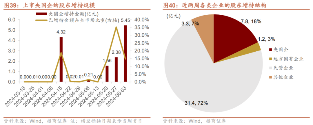 增持的主体是大股东,不同类型公司的大股东做增持的理由也不同,但都是看好公司未来会比现在好。最近一个月增持规模明显起来了,民企和央国企的增持比例大概在82开,民企增持的积极性会更高一些。
