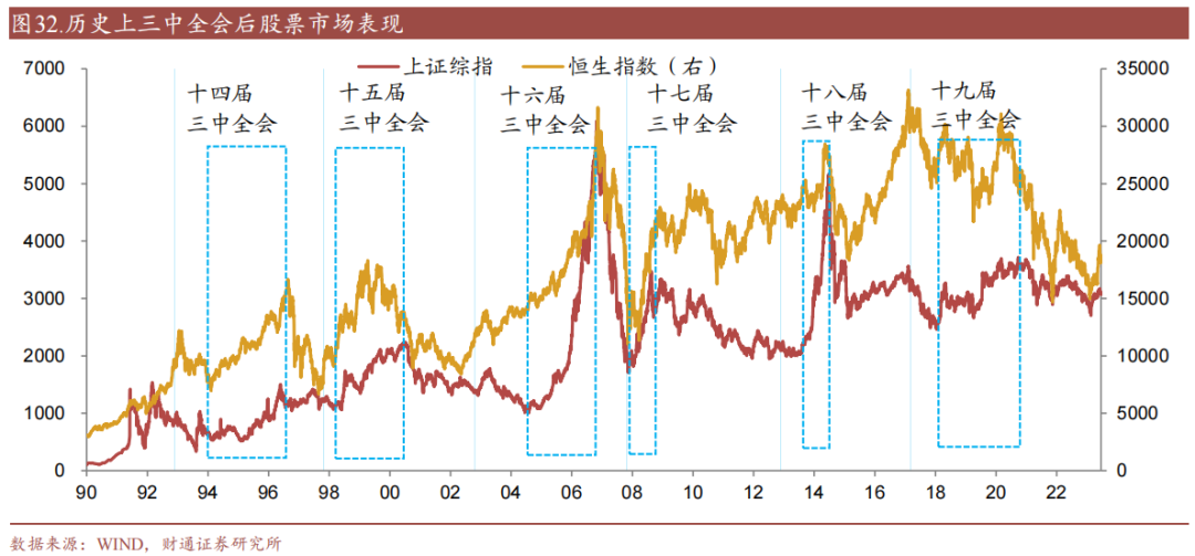 当然以上更多是一种前瞻性的猜测,大会可能还会有更重要的信息。过去几次三中全会召开后,基于大会的内容,市场风格切换的概率较高,所以大会提到的产业方向值得重点关注。此外,复盘历次大会后的走势,可以看到一定的正面效用。