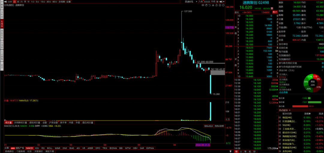 今天港股那边又有异动了,被称为“港股激光雷达第一股”的速腾聚创暴跌68%,一天就没了150亿港币市值。查了一下今天是有年初参与IPO的机构解禁了,这种卖法真是不管成本,只要流动性。。