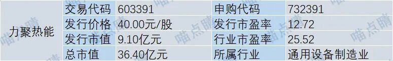 力聚热能主营业务为热水锅炉与蒸汽锅炉的研产销,产品用于供应采暖和生活用水,以及供应工业生产所需的蒸汽。从历史统计来看,公司各项指标对应破发率相对较低。