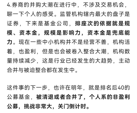 流动性恢复市场的第一反应就是去干券商了,今天券商和炒股软件集体大涨。逻辑上市场有传合并的消息,这个事儿咱跟大伙跟踪比较久,周日也正好聊过。但是看板块的排位,其实不太能深究,暂时当做是流动性的载体来处理吧。