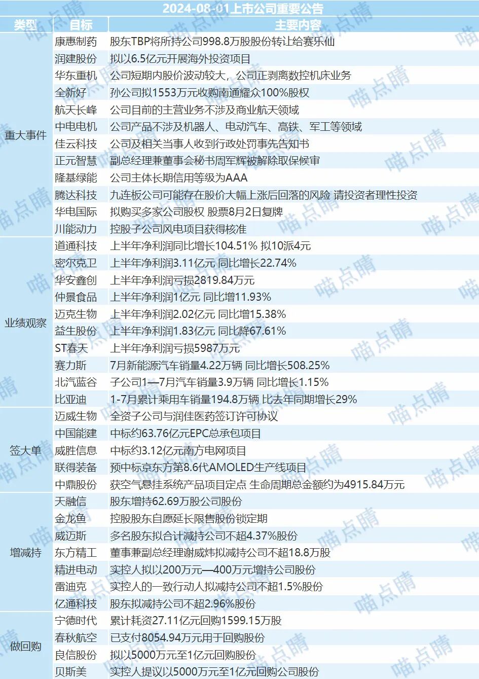 3、”造车新势力”7月成绩单出炉。理想交付5.1万辆,创月交付历史新高,同比+49.4%;小鹏交付1.1万辆,同比+1%。蔚来交付2.05万辆,同比+43.9%。赛力斯销量4.22万辆,同比+508.25%。小米SU7交付量超1万辆,8月交付量将持续破万,预计11月提前10万交付目标。