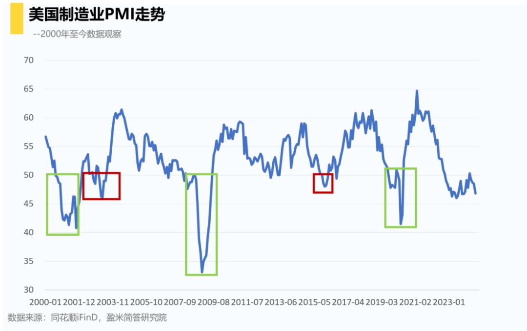 这一次波动市场交易的是美国经济的衰退预期,昨天公布的7月制造业PMI将至46.8,低于市场预期的48.8,已经连续4个月低于荣枯线了。从2000年以来有6次出现美国制造业PMI连续低于50的情况,其中有2次只是小问题,3次都出现了比较严重的危机,这里市场演绎衰退逻辑也不是没有道理的。