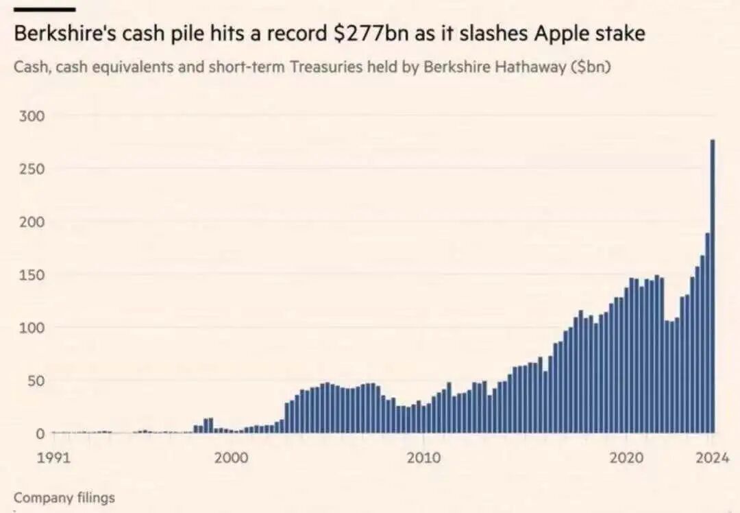 过去两三年火热的美国市场,老巴对AI不感冒,对互联网没兴趣,保持谨慎很正常,所以老巴出现创记录的现金头寸,没有那么大的权益头寸,符合他一贯的风格。