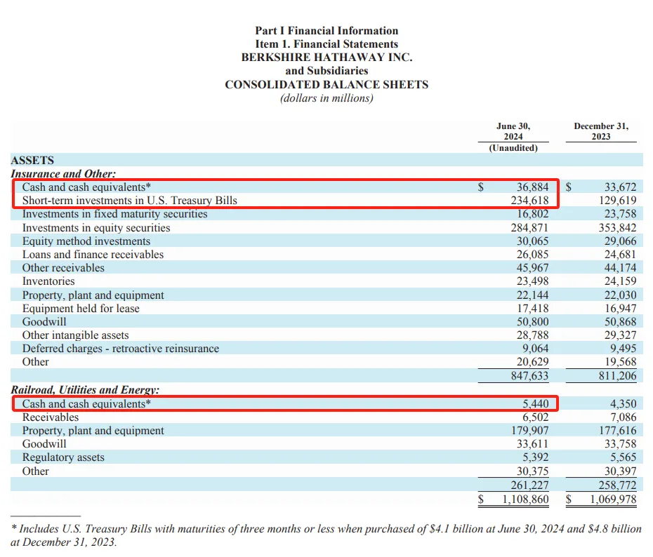 这个图片里面有个重要细节,就是现金类资产的构成,他告诉我们最大头寸是2346亿的shortterm investments in U.S. Treasury Bills。
