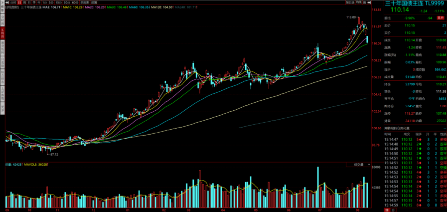 另外国债期货今天延续调整,上周五TL主连还在113,到今天最低击破110了,调整起来幅度是真蛮快的。过去这一波市场下行有不少人在债基里避险,调整下来被套得比较凶。。