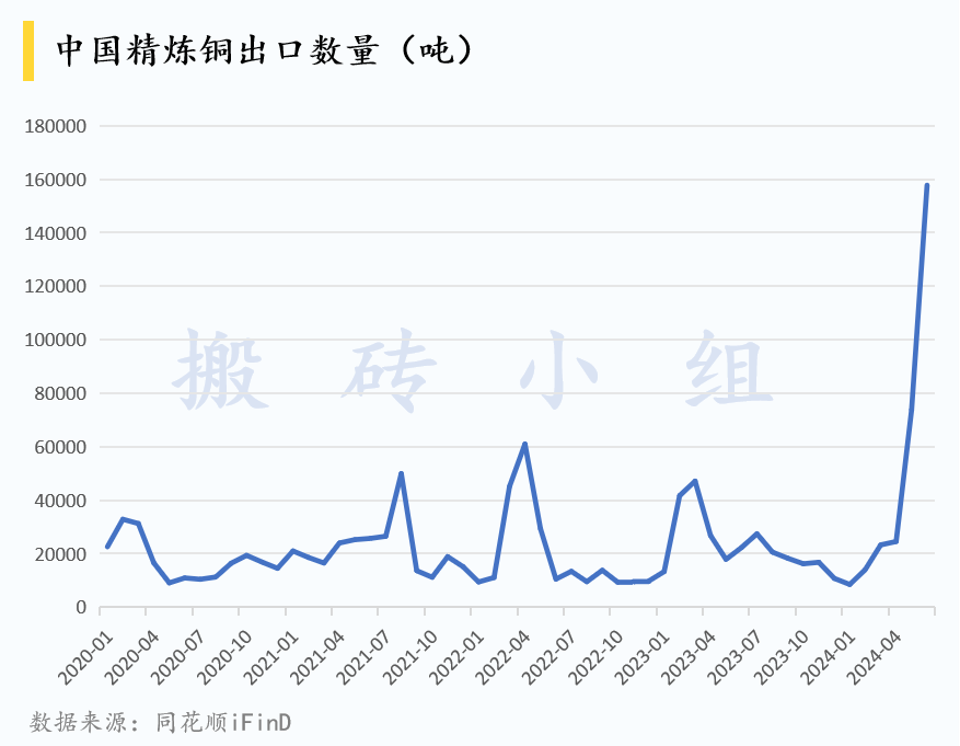 铜和铝的下跌则是需求的缘故,数据上看确实是比较弱的,大伙儿都在等国内更多的动作出来。今天还有小伙伴分享了一个数据,从5月开始精炼铜的出口就大幅度飙升,这算是看明白为啥这波国际铜价能跌那么多了。。