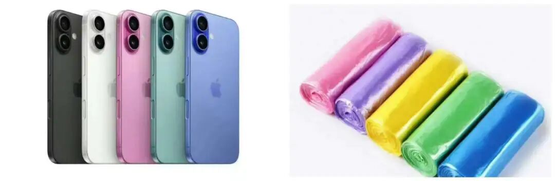 iPhone 16系列,标准版和pro分别搭载了A18和A18Pro芯片,采用了3纳米工艺,提供群青色、深青色、粉色、白色以及黑色五种配色,网友戏称为塑料袋配色,确实有点像。。