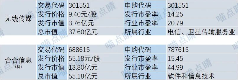 无线传媒主营业务为IPTV集成播控服务,是河北省三网融合内容集成播控平台唯一运营机构;合合信息是一家人工智能及大数据科技企业,为全球C端用户和多元行业B端客户提供数字化、智能化的产品及服务。从历史统计来看,这两家公司各项指标对应破发率相对较低。