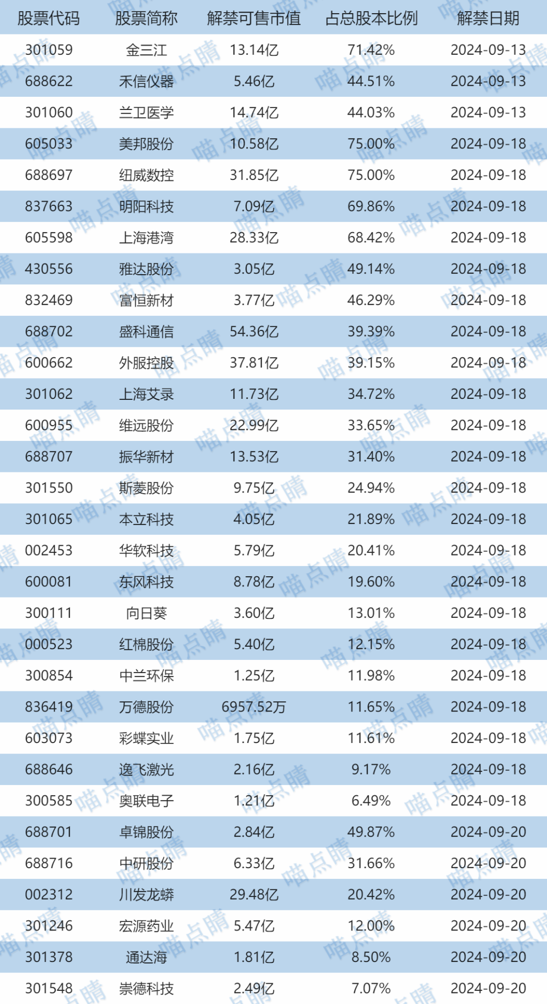 【限售解禁】
