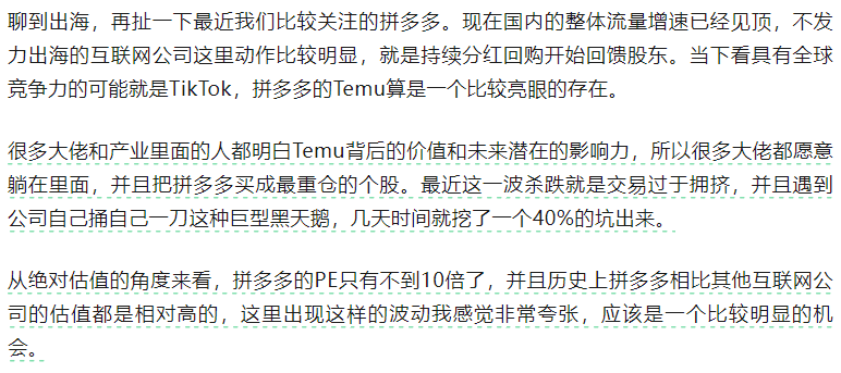 拼多多在上个月大跌的时候跟大伙儿聊过(文末有原文链接),跌到那位置肯定是有性价比的。这个大涨明显是外资对中概核心资产有比较大的改观,据说昨晚高盛关于中国资产的电话会都被挤爆了。