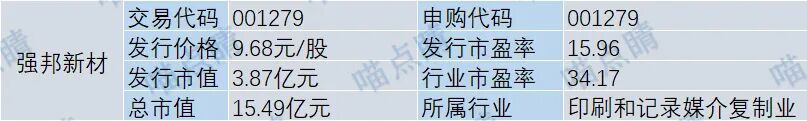 强邦新材主要从事印刷版材的研产销,产品广泛应用于印刷书籍报刊、画册说明书、瓦楞纸箱、食品包装盒、药品包装物等多种印刷品。从历史统计来看,公司各项指标对应破发率相对较低。