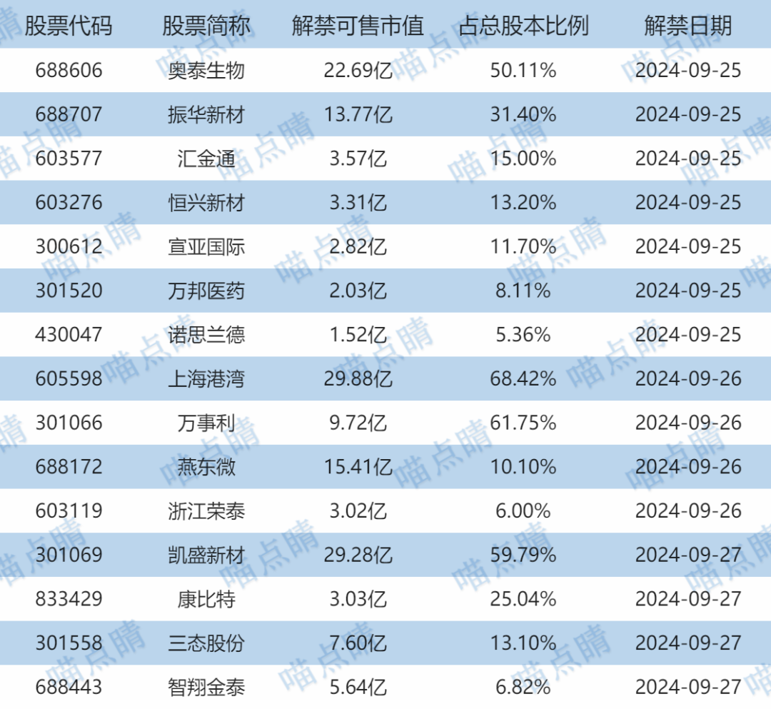 【限售解禁】