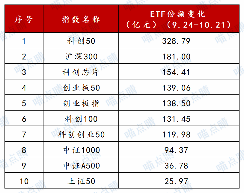 另一方面,ETF的增量也不可小觑,新入市的投资者都瞄准了20cm的双创,不过其中很多人达不到买入资格,即便有资格,也不知道买啥,所以莫不如简单点直接怼ETF,下图是9月24日到现在的ETF增量前十,几乎被双创霸榜了,含”芯”量十足。。
